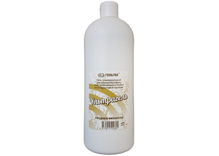 Гель универсальный для ультразвуковых, электрофизиологических исследований и терапии «Ультрагель» средней вязкости не содержит в составе солей, контактирует с ультразвуковыми датчиками, электродами, не оказывая на них негативного воздействия. Гель показан к применению в качестве контактной среды для проведения ультразвуковых и электрофизиологических исследований, терапии, фото- и лазерной косметологии. Гель применяется для всех ультразвуковых процедур (например, ультразвуковой диагностики, эхокардиографии и т.п.) и электрофизиологических процедур (ЭКГ, ЭЭГ, РЭГ). Гель универсальный для ультразвуковых, электрофизиологических исследований и терапии «Ультрагель» средней вязкости служит эффективной контактной средой исследований при использовании отечественной или импортной аппаратуры. Гель наносится непосредственно на датчик, либо тело пациента, легко распределяется и не растекается по коже, долго не сохнет, обеспечивая длительное скольжение и полный контакт датчика с телом пациента. После проведения исследования гель легко удаляется салфеткой или смывается водой. Гель не пачкает одежду, не вызывает аллергии, не портит датчики, водорастворимый. 18 – 23 Па•с (Брукфильд RVDVII+Pro/SC4-29/30 об/мин., скорость сдвига (7,5±0,1)•с. Удельная электрическая проводимость: Акустический импеданс: 1,52•10 кг/м2.