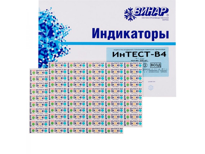 Индикаторы ИнТЕСТ-В4 предназначены для оперативного визуального контроля соблюдения критических переменных воздушной стерилизации - температуры и времени стерилизационной выдержки - как в камере стерилизатора, так и внутри упаковок и изделий.