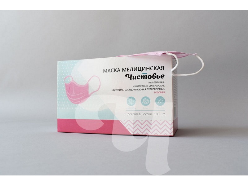 Одноразовая маска на резинке производства компании «Чистовье». Трехслойный материал обеспечивает максимальный уровень фильтрации. Первый и третий слои масок изготовлены из спанбонда, средний (фильтр) из мельтблауна. Маски не препятствуют свободному дыханию. Упакованы в картонную коробку.