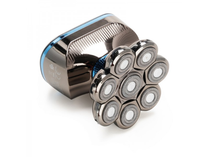 Современное решение для тех, кто предпочитает идеальную гладкость каждый день. Оснащён 8 гибкими головками, триммер точно повторяет контуры головы, обеспечивая аккуратное и мягкое бритьё без раздражения. Полностью водонепроницаемый корпус позволяет использовать прибор даже в душе и легко очищать его под струёй воды. Компактная форма, эргономичный захват и простота использования делают этот триммер незаменимым как дома, так и в поездке.